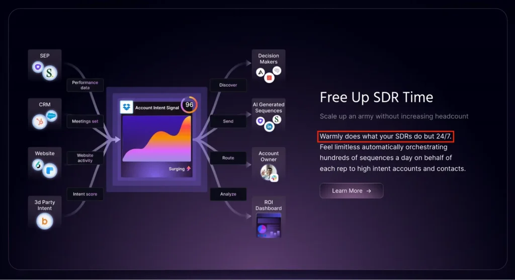 In other words, Warmly “does what your SDRs do but 24/7”.